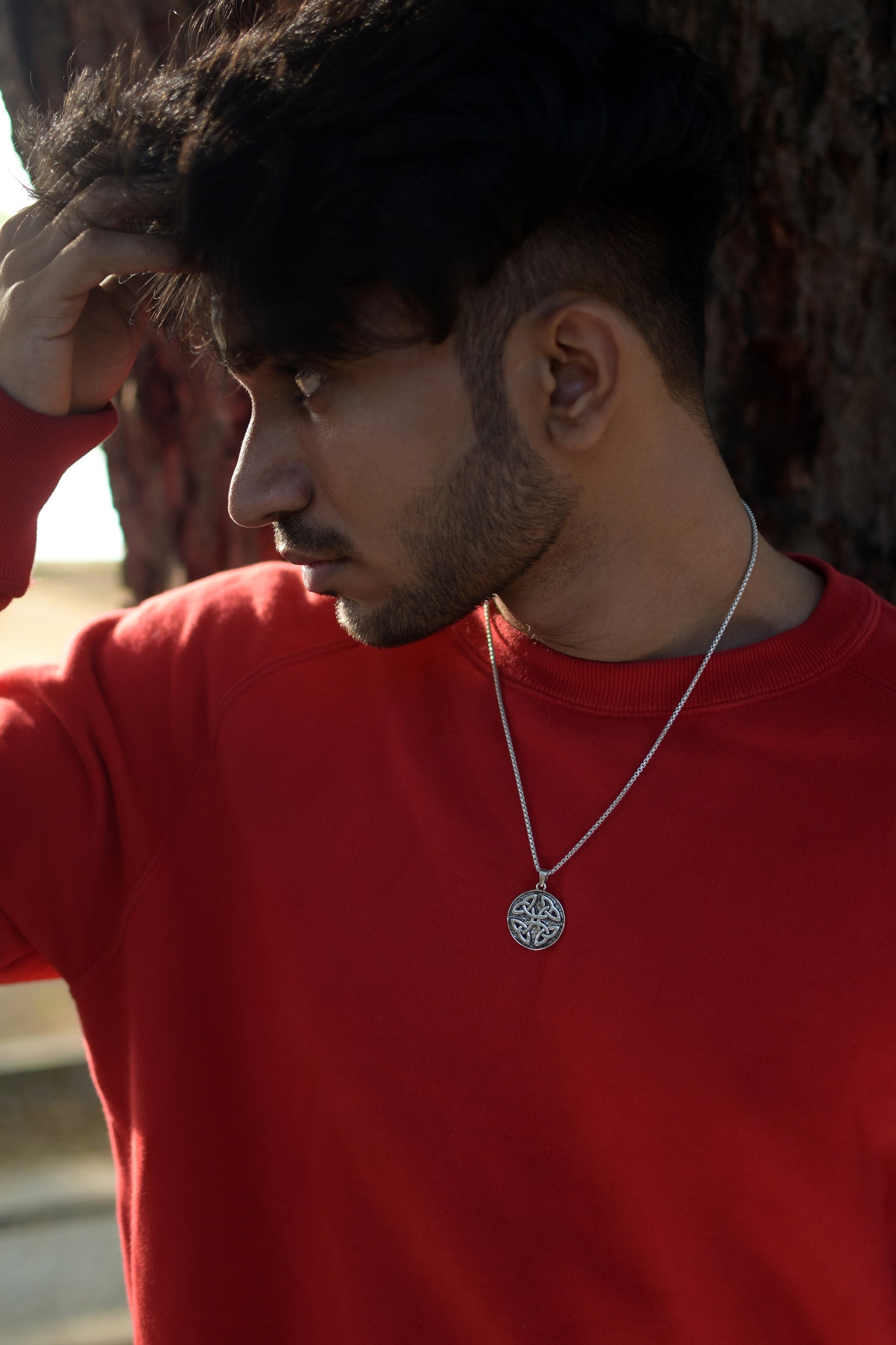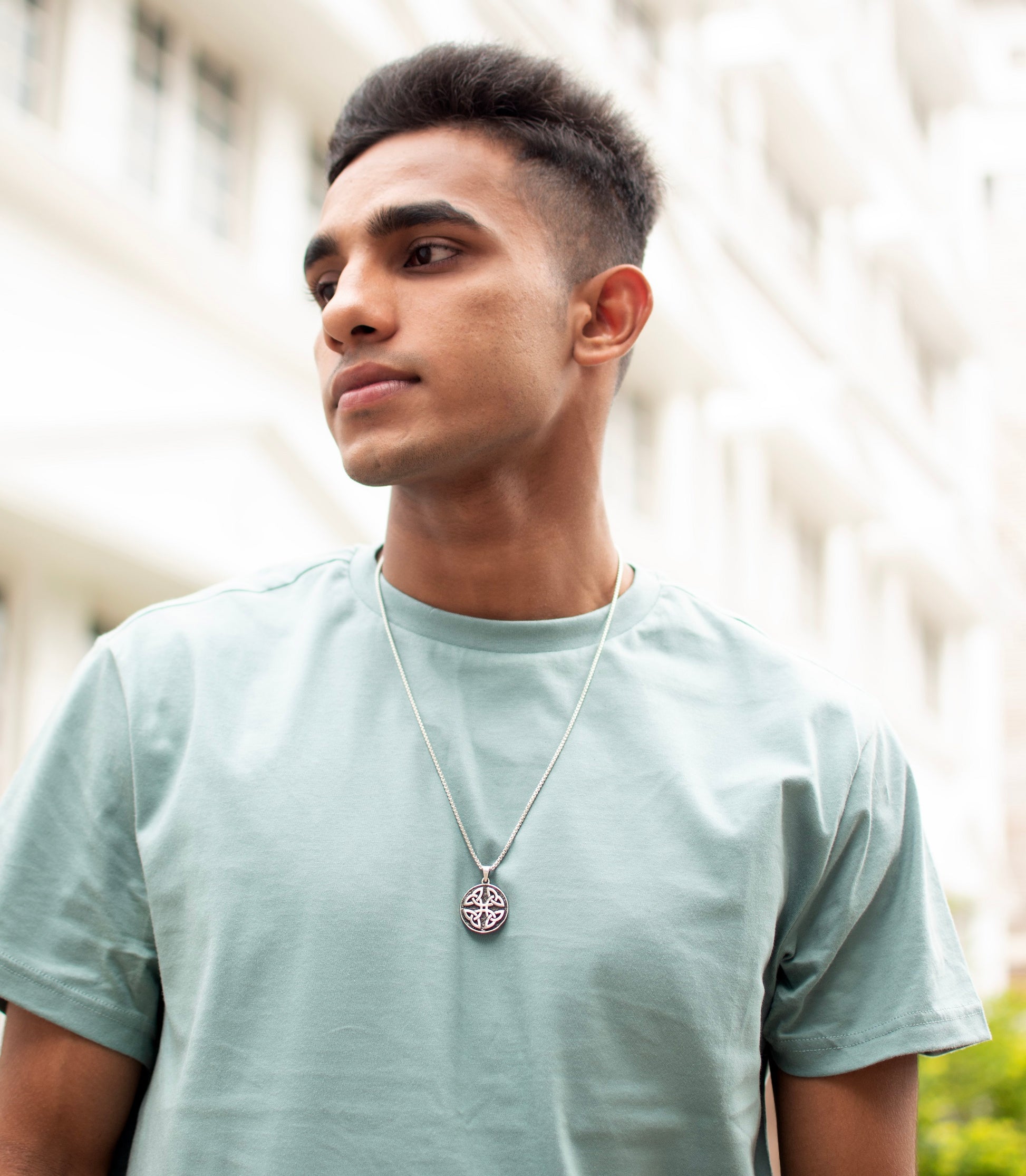Our Silver Celtic knot necklace features an intricate design inspired by Celtic art and symbolism. Crafted in sterling silver, it showcases interwoven patterns representing eternal love, unity, or spirituality.